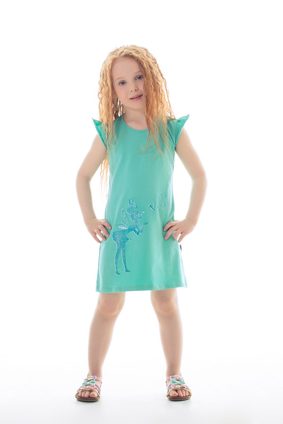 Простой силуэт платья очень мило смотрится на маленькой девчушке. На платье рисунок феи, который выполнен методом шелкографии с нанесением глиттера (блестящих крапинок). Рисунок блести и выглядит волшебно!
