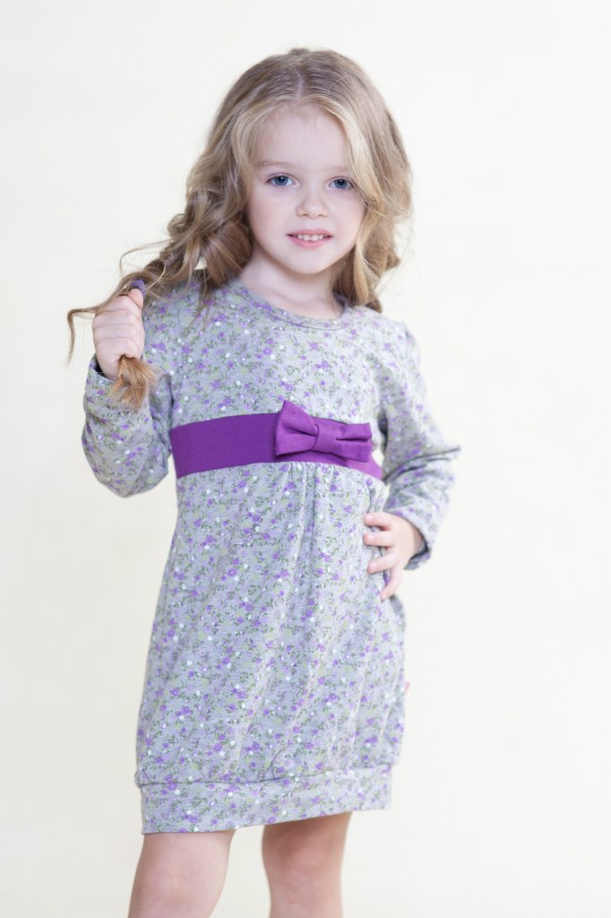 Модное платье фасона «баллон». Выполнено из эластичного трикотажа с набивным рисунком. Рукава фонарики, кокетливый бантик – изделие смотрится стильно и романтично. Если ребенок выглядит хорошо, то это плюс его маме!