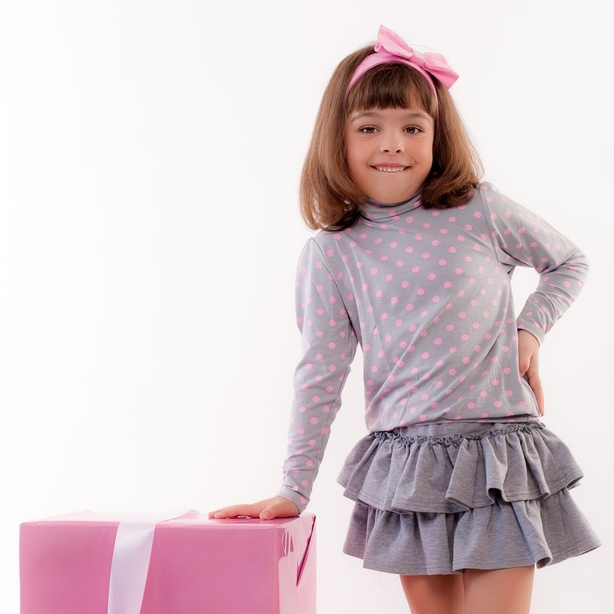 Если Вы у Вас есть дети, то Вы знаете как часто дети выправляют одежду из штанишек и джинсов. Это часто смотрится неряшливо. Мы решили эту проблему! Водолазка с манжетом - это значит ребенку удобно, а маме - красиво! Очень милая водолазка в розовый горошек.