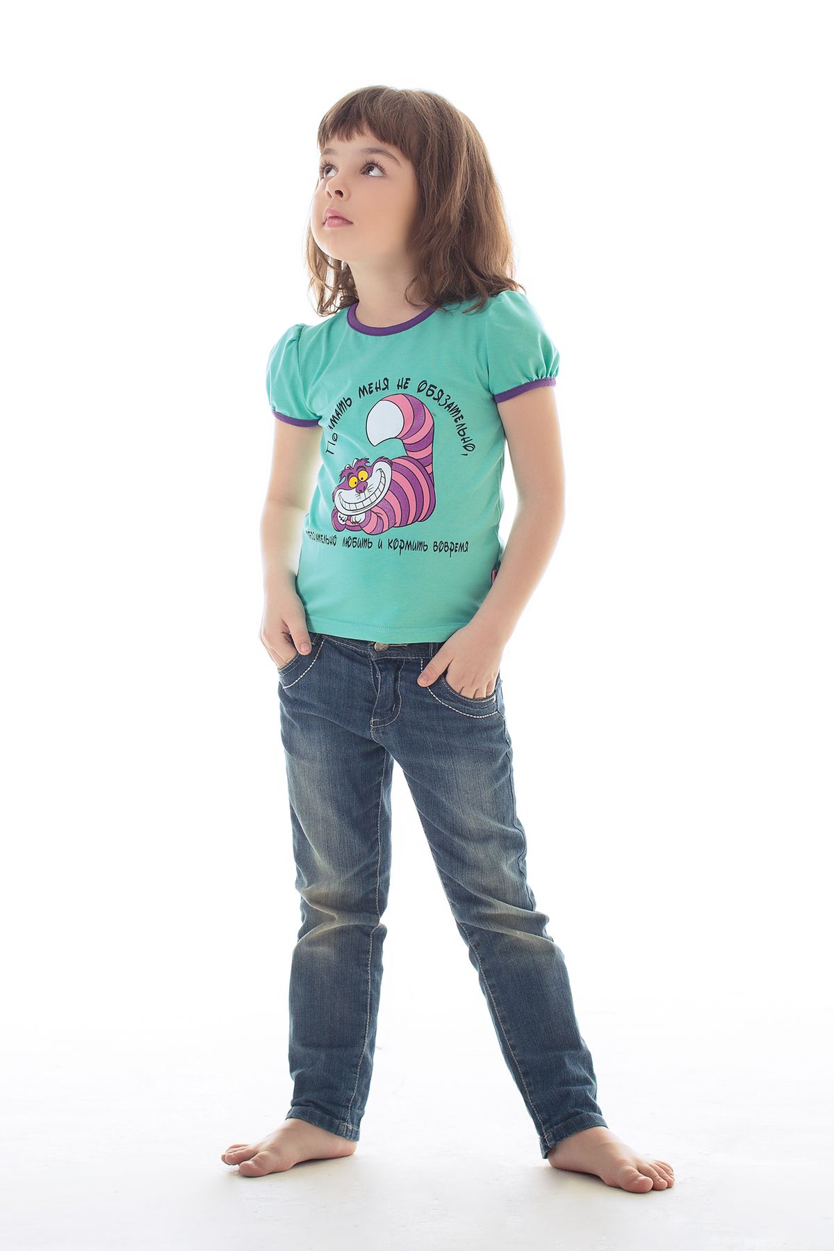 "Понимать меня не обязательно, обязательно любить и кормить вовремя", - эту фразу из сказки "Алиса в стране чудес", сказанную котом графине, с удовольствием повторят многие проказники своим родителям. Футболка с милыми фонариками на рукавах, из мягкого приятного материала.