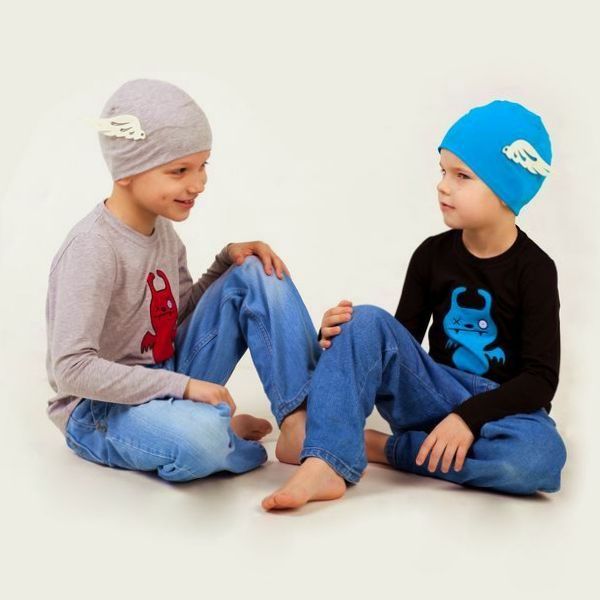 Необычная трикотажная шапочка с интересным дизайном. В шапочке с крыльями ходил любимый герой мальчиков - Астерикс и Гермес - бог ловкости и красноречия. Шапочка выполнена из эластичного трикотажа. Аппликация сделана из фетра, который выдерживает многократные стирки.