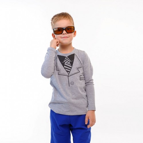 Именно такая одежда нужна Вашему ребенку, а не мешковатые рубашки, которые постоянно торчат из брюк. В этой футболке мальчик может прыгать, бегать, веселиться, а когда воспитатель скажет сделать серьезное лицо, то он будет похож на маленького денди.